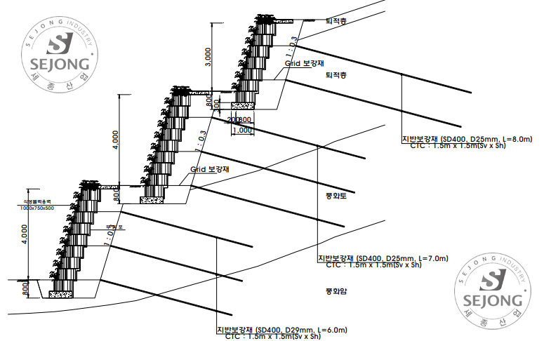 (주)세종산업 식생옹벽축조블럭 보강토옹벽블럭