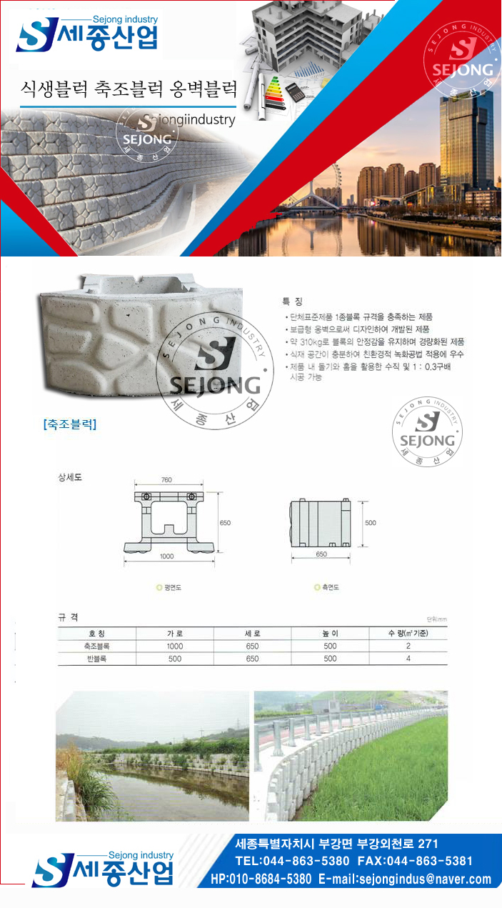 식생블럭/축조블럭/옹벽블럭 생산 공장-주식회사 세종산업