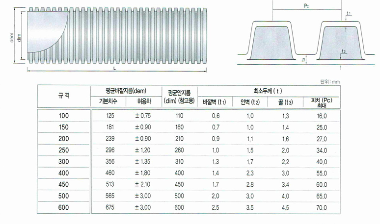 고강성pvc이중벽관 규격 두께