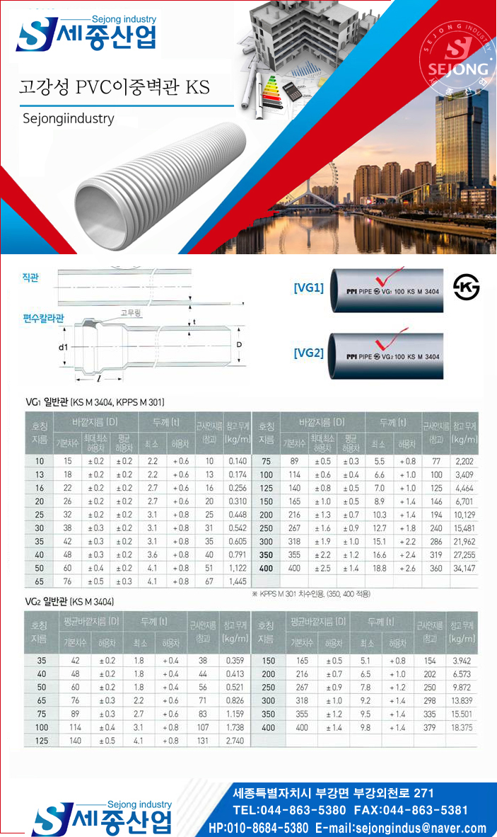 주식회사 세종산업 고강성 PVC이중벽관KS