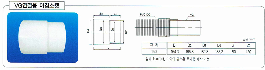 연결소켓이 pvc이중벽관과 일체형으로 된 TS관 확관타입 2종류입니다