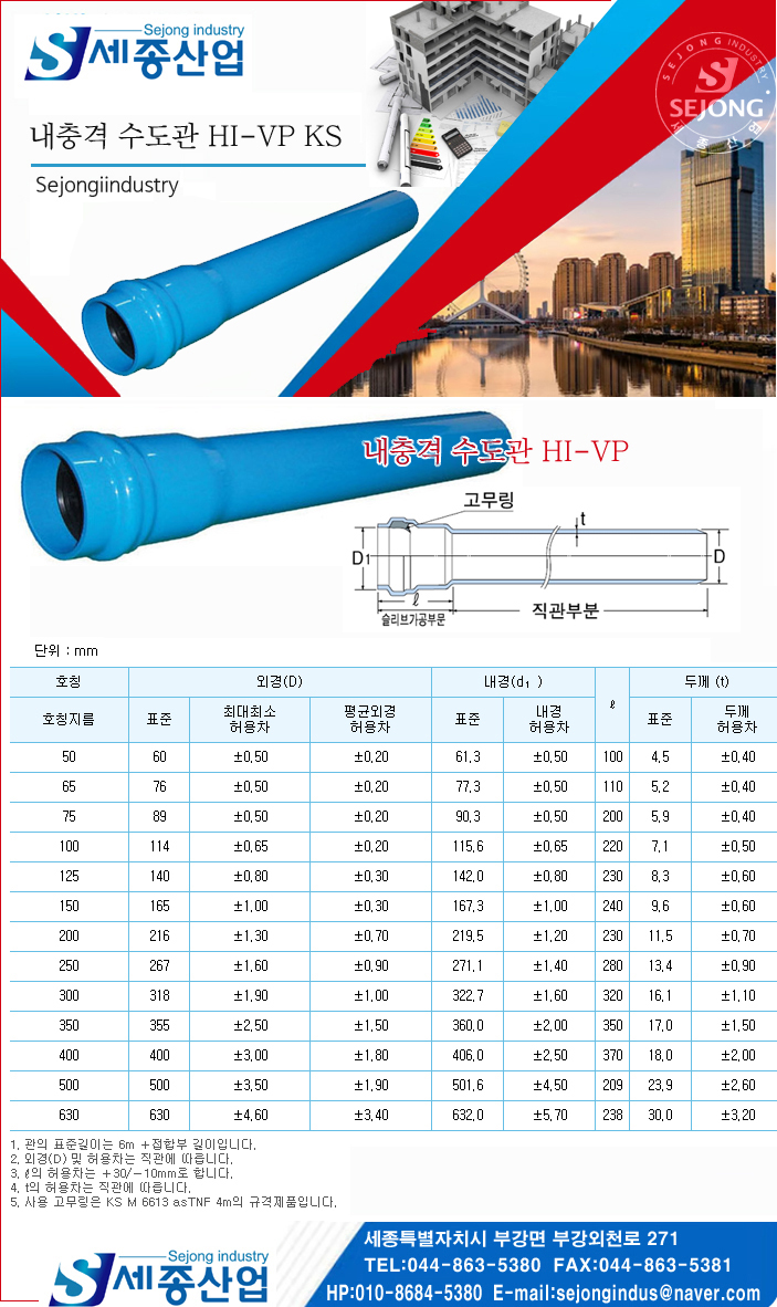 내충격수도관 Hi-VP 규격 두께